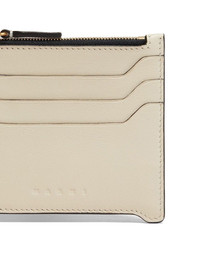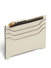 small zipped leather card case Highlights - Cream white/black - Calf leather - Smooth grain - Debossed external logo - Zip fastening - Main compartment - External card slots Made in Italy Composition Outer: Calf Leather 100%