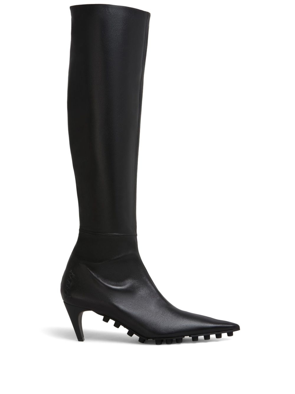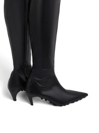 Spike leather knee-high boots Highlights - Black - Goatskin - Knee-high - Soft-spike sole - Side zip fastening - Pointed toe - Mid sculpted heel - Branded leather insole - Rubber sole Made in Italy Composition Leather 100%