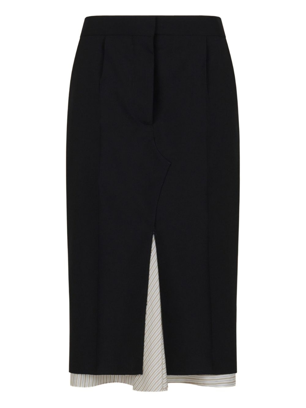 split-hem pencil skirt Highlights - Black - Front split detail - Contrasting inner panel - Tailored design Made in Italy Composition Outer: Virgin Wool 100% Lining: Cupro 100%, Cotton 100% SIZE & FIT Measurement HIPS 37 in(94 cm) LENGTH 29.52 in(75 cm) WAIST 29.92 in(76 cm)