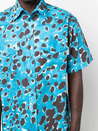 spot-print short-sleeve shirt blue/black spot print classic collar front button fastening short sleeves curved hem two button-fastening chest pockets Made in Italy Composition Cotton 100% SIZE & FIT Model measurements Height 6 ft 0 in(1.84 m) Bust/Chest 35.82 in(91 cm) Hips 37 in(94 cm) Waist 28.34 in(72 cm) FittingInformation This piece fits true to size. We recommend you get your regular size Cut for a loose fit Made with a mid-weight non-stretch fabric Washing instructions Dry Clean Only