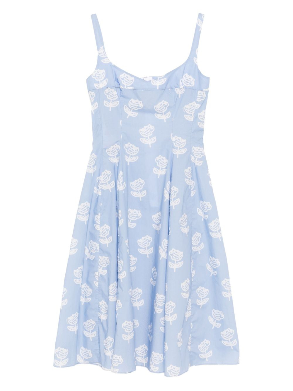 sprayed roses-print poplin dress Highlights - Light blue - Rear zip fastening - Rear hook fastening Made in Italy Composition Cotton 100% SIZE & FIT Model measurements Height 5 ft 10 in(1.78 m) Bust/Chest 30.31 in(77 cm) Hips 37 in(94 cm) Waist 24.8 in(63 cm) FittingInformation Designed for a close fit at the chest and waist with a loose fit at the hip Made from a lightweight non-stretch fabric Washing instructions Dry Clean Only