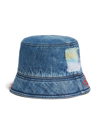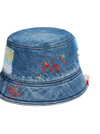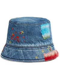 star-embroidered denim bucket hat Highlights - Indigo blue - Cotton - Denim - Star embroidery - Knitted panels - Flat peak - Wide brim Made in Italy Composition Cotton 100% Washing instructions Do Not Wash/Do Not Dry Clean