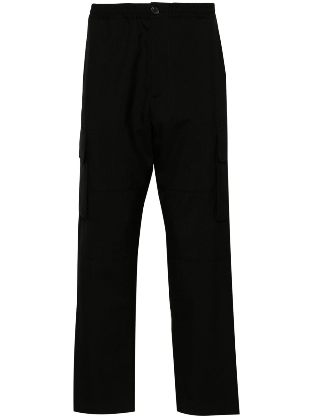 decorative-stitching cargo trousers These black Marni trousers are crafted from tropical wool with an airy and lightweight handle. They’re cut to a utilitarian cargo silhouette with flap pockets at the straight leg and an elasticated drawstring waistband for an adjustable fit. Highlights - Black - Virgin wool - Mid-rise - Elasticated waistband with internal drawstring - Two side slit pockets - Two side cargo pockets - Rear button-fastening pocket - Rear flap pocket - Straight leg - Front button and zip fastening Imported Composition Lining: Cotton 69%, Polyamide 31% Outer: Virgin Wool 100% SIZE & FIT Model measurements Height 6 ft 2 in(1.87 m) Bust/Chest 36.22 in(92 cm) Hips 37 in(94 cm) Waist 27.95 in(71 cm) FittingInformation Designed for a straight-leg, allowing for an unrestricted and comfortable fit over the leg The elasticated waist allows for a comfortable fit Made from a midweight non-stretch fabric This piece fits true to size – take your usual size Washing instructions Dry Clean Only
