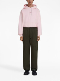 gabardine cargo trousers Highlights - Olive brown - Cotton - Straight leg - Front button and zip fastening - Elasticated waistband - Two side inset pockets - Two side cargo pockets - Two rear welt pockets Imported Composition Cotton 100% SIZE & FIT FittingInformation Designed for a tapered leg, offering a loose unrestricted fit over the leg with a closer fit towards the ankle Adjust this piece’s waistband to your preference using the drawstring Made from a midweight non-stretch fabric