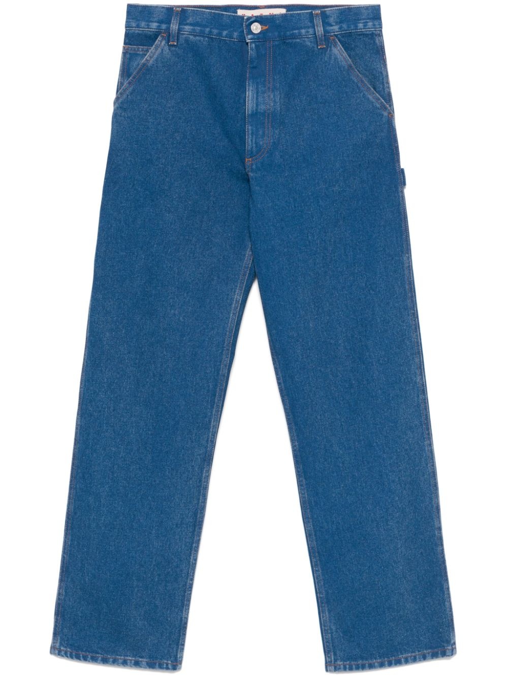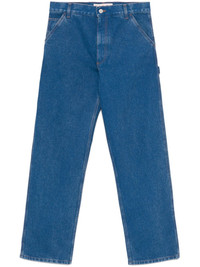 straight-leg jeans Highlights - Medium blue - Organic cotton - Denim - Front button and zip fastening - Belt loops - Classic five pockets - Two side patch pockets - Logo patch to the rear - Strap detailing to the side - Straight leg Made in Italy Composition Lining: Polyester 65%, Organic Cotton 35% Outer: Organic Cotton 100% SIZE & FIT Model measurements Height 6 ft 1 in(1.85 m) Bust/Chest 35.82 in(91 cm) Hips 37.79 in(96 cm) Waist 29.13 in(74 cm) FittingInformation Designed with a straight leg, these jeans allow for an unrestricted and comfortable fit over the leg Sturdy and hard-wearing, this denim piece offers no stretch