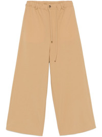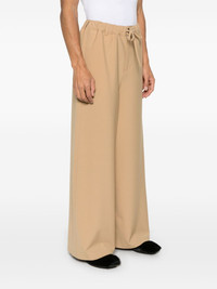 straight-leg trousers Highlights - Sand beige - Front button and zip fastening - Drawstring waist - Two side slit pockets - Rear welt pocket Made in Italy Composition Outer: Polyester 53%, Virgin Wool 43%, Elastane 4% Lining: Cotton 100% SIZE & FIT Model measurements Height 6 ft 2 in(1.87 m) Bust/Chest 38.18 in(97 cm) Hips 36.61 in(93 cm) Waist 29.13 in(74 cm) FittingInformation Designed with a wide leg, offering a loose and roomy fit The elasticated waist allows for a comfortable fit Made from a midweight stretch fabric, this piece offers elasticity and flexibility when worn