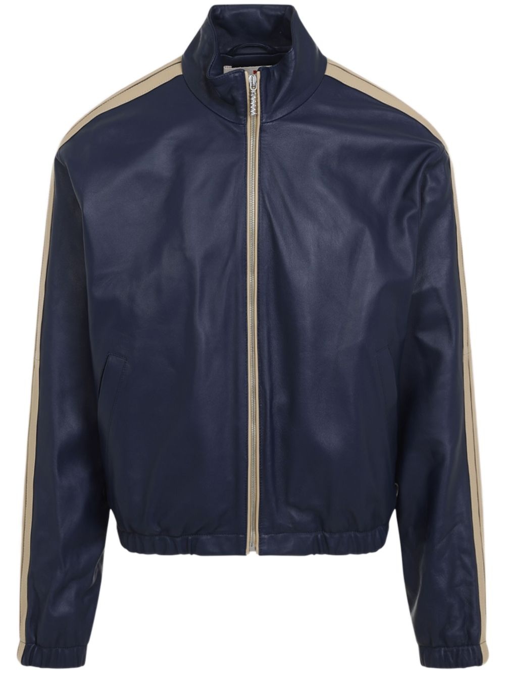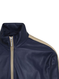 stripe-detailing bomber jacket Highlights - Navy blue - Front zip fastening - Two side zip-fastening pockets - Stand-up collar - Long sleeves Made in Italy Composition Sheepskin 100%