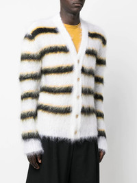 stripe-print cardigan Highlights - White - Black - Yellow - Mohair-wool blend - Knitted construction - Horizontal stripe print - V-neck - Long sleeves Made in Italy Composition Mohair 80%, Polyamide 20% SIZE & FIT Model measurements Height 6 ft 2 in(1.87 m) Bust/Chest 36.41 in(92.5 cm) Hips 37 in(94 cm) Waist 29.52 in(75 cm) Measurement SLEEVE LENGTH 27.95 in(71 cm) Shoulder Width 6.49 in(16.5 cm) FittingInformation This piece fits true to size. We recommend you get your regular size Cut for a relaxed fit Made with a mid-weight fabric Washing instructions Dry Clean Only