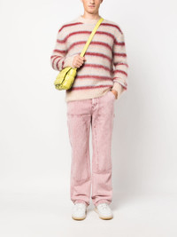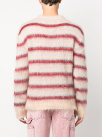 striped brushed-effect jumper Woven in Italy from a blend of mohair and wool, this crew neck jumper from Marni taps into the brand's unique take on knitwear. Cut to a relaxed silhouette, it boasts a textured brushed finish and contrasting red stripes throughout. Highlights - Multicolour - Mohair-wool blend - Horizontal stripe pattern - Crew neck - Long sleeves - Ribbed cuffs and hem - Brushed effect Made in Italy Composition Mohair 67%, Polyamide 28%, Wool 5% SIZE & FIT Model measurements Height 6 ft 2 in(1.89 m) Bust/Chest 38.97 in(99 cm) Hips 38.18 in(97 cm) Waist 32.28 in(82 cm) FittingInformation Designed for a relaxed fit, this piece allows for comfort and movement when worn Made with a midweight knit, this piece offers some stretch This piece fits true to size – take your usual size