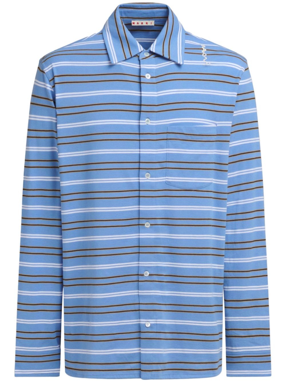 striped buttoned shirt Highlights - Blue - Cotton - Horizontal stripe pattern - Button fastening - Classic collar - Logo-embroidered collar - Long sleeves - Chest patch pocket - Straight hem Made in Italy Composition Cotton 100%