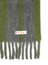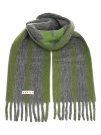 striped fringed scarf Highlights - Grey and olive green - Vertical stripes - Fringed edges - Logo patch - Brushed finish Imported Composition Fabric 100%