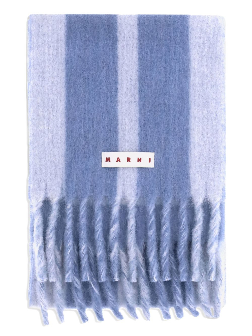 striped fringed scarf Highlights - Blue - Striped pattern - Wool blend - Fringed edges Made in Italy Composition Wool 50%, Polyamide 20%, Alpaca 15%, Mohair 15% Washing instructions Read Manufacturer Guidelines