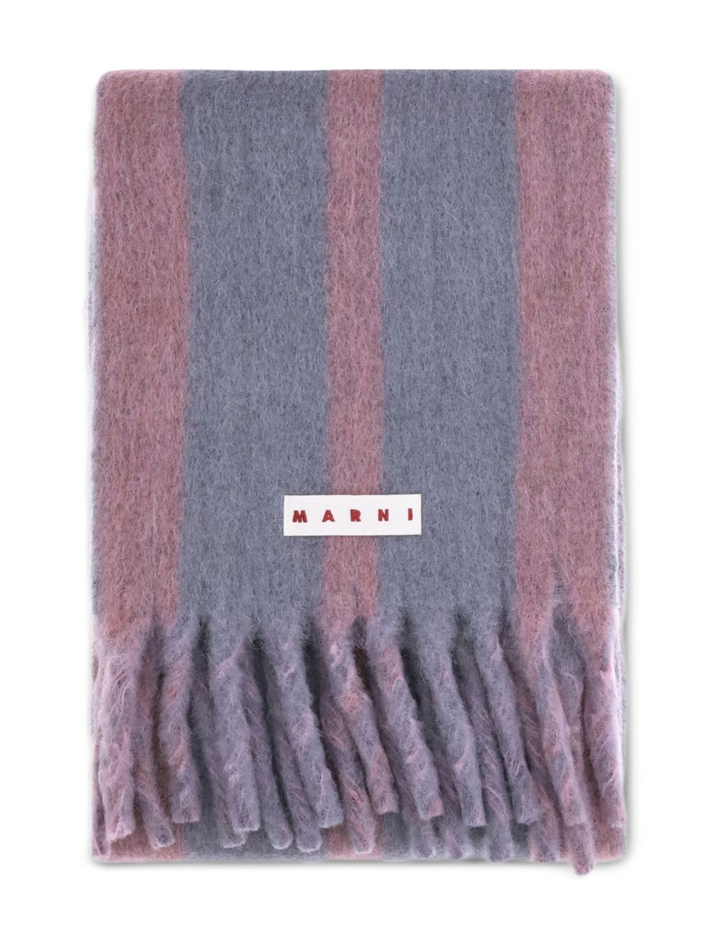 striped fringed scarf Highlights - Grey purple - Striped pattern - Fringed edges - Wool blend Made In Italy Composition Wool 50%, Polyamide 20%, Alpaca Wool 15%, Mohair 15% Washing instructions Read Manufacturer Guidelines