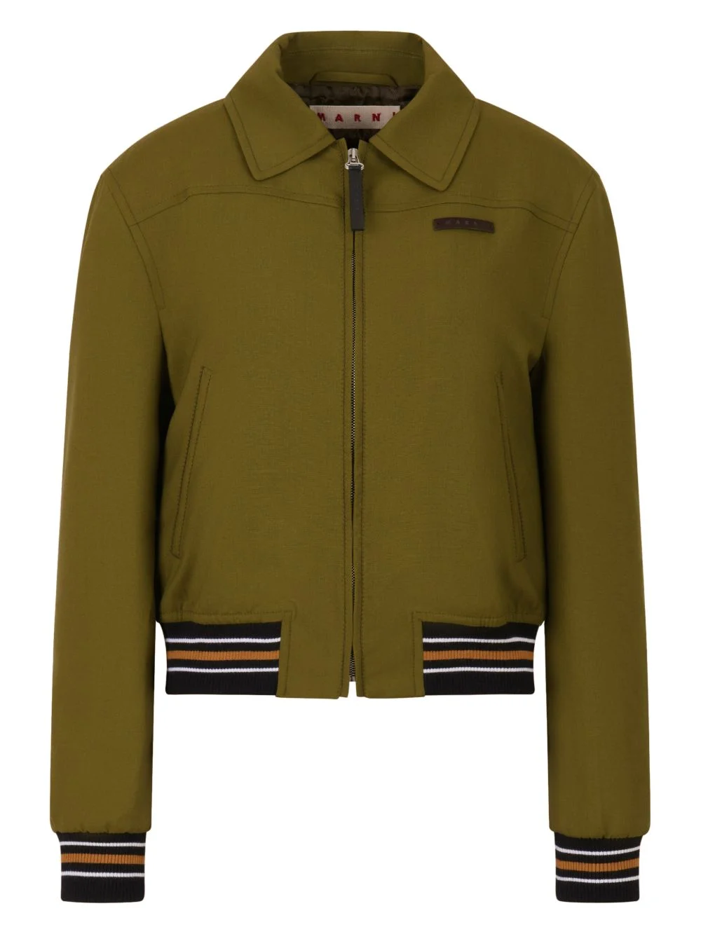 striped ribbed jacket Highlights - Green - Striped ribbed trims - Zip closure Made in Italy Composition Virgin Wool 100% Washing instructions Read Manufacturer Guidelines