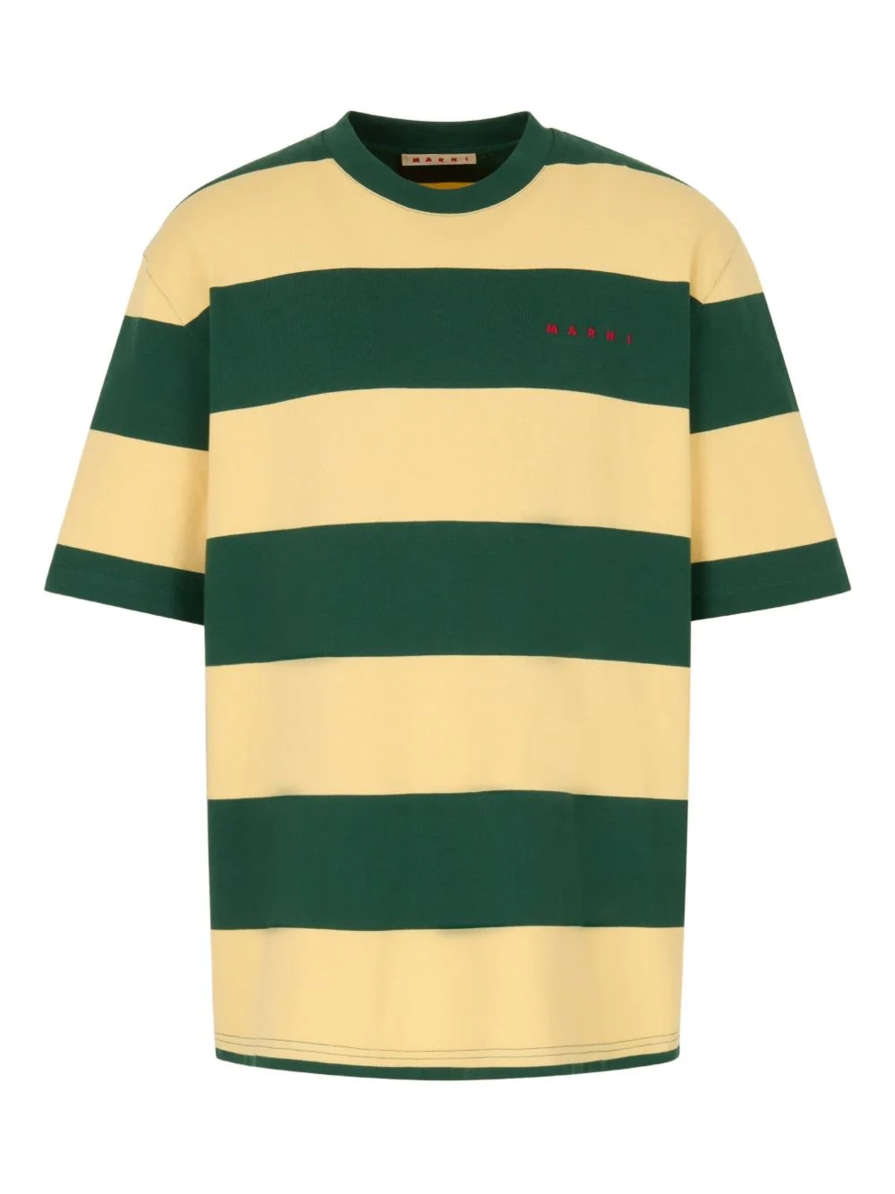 GREEN AND YELLOW MAXI-STRIPE COTTON T-SHIRT