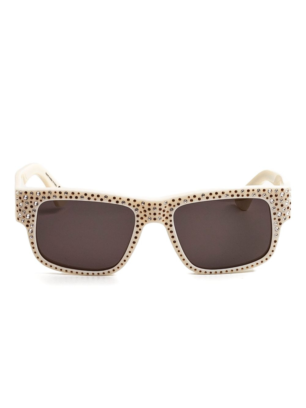 swarovski rectangle sunglasses Highlights - Off-white - Rectangle frame - Swarovski embellishment - Tinted lenses - Curved arms - Moulded nose pads - These glasses come with a protective case. Made in Italy Composition Acetate 100%