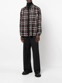 tartan button-down shirt dark grey/red/off-white virgin wool check pattern button-down collar drop shoulder long sleeves chest patch pocket Imported Composition Virgin Wool 100% SIZE & FIT Model measurements Height 6 ft 1 in(1.86 m) Bust/Chest 31.88 in(81 cm) Hips 34.25 in(87 cm) Waist 28.34 in(72 cm) FittingInformation Designed to be unstructured, offering a loose fit throughout Made from a midweight non-stretch fabric This piece fits true to size – take your usual size Washing instructions Dry Clean Only
