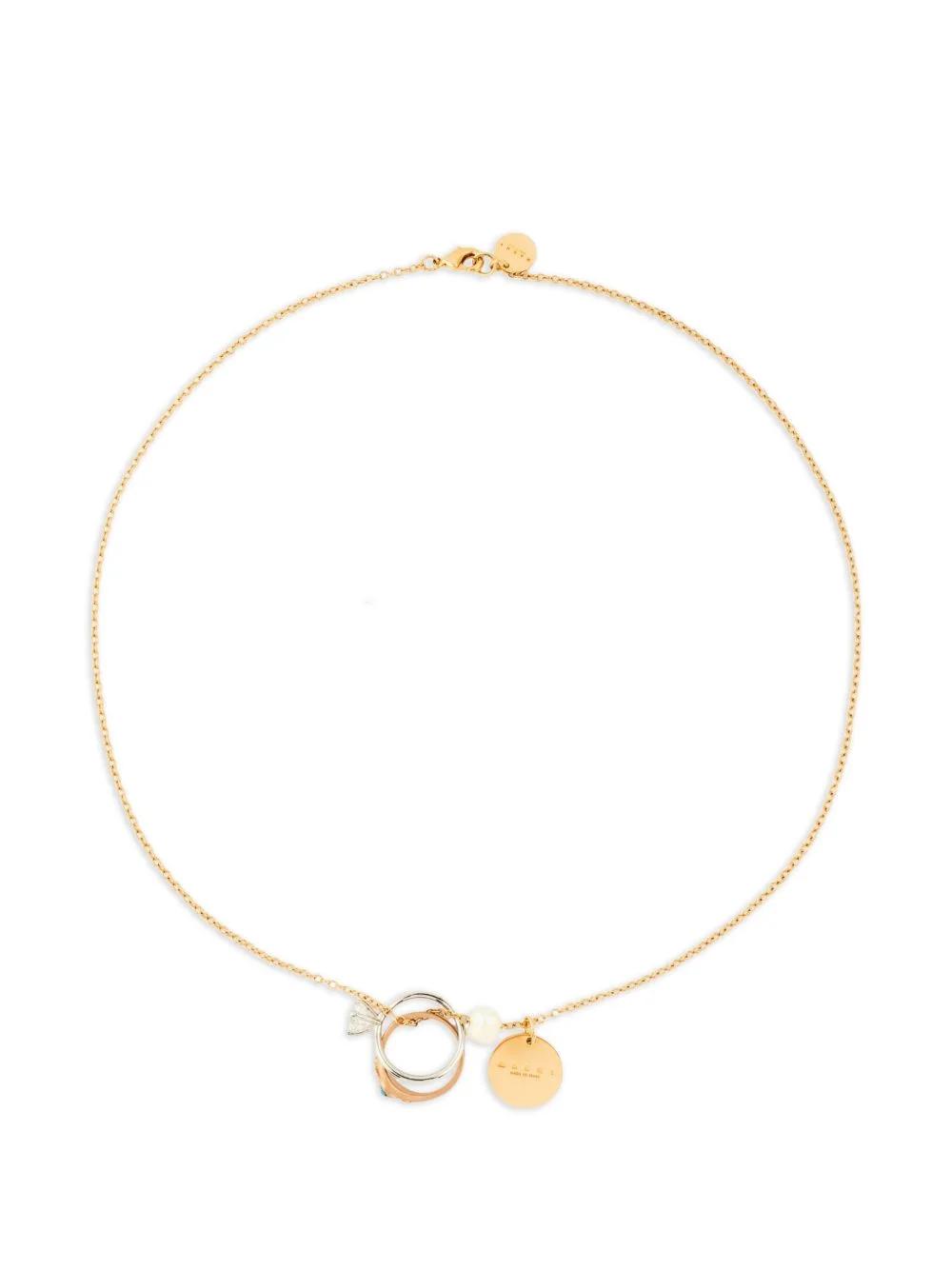 CHAIN NECKLACE WITH PEARL AND RING CHARMS