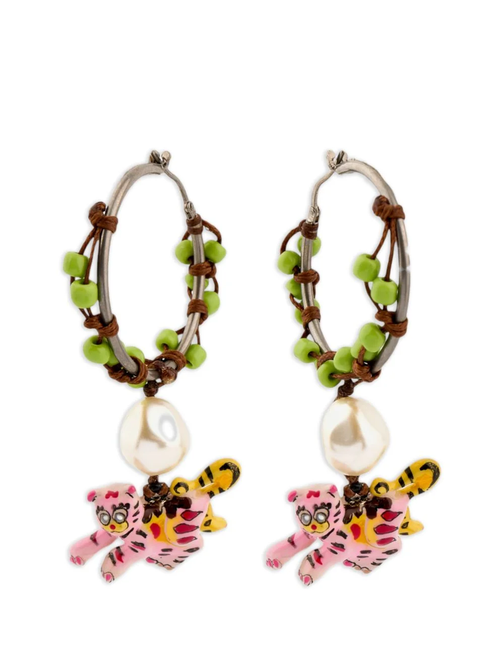 BEADED EARRINGS WITH TIGER PENDANTS