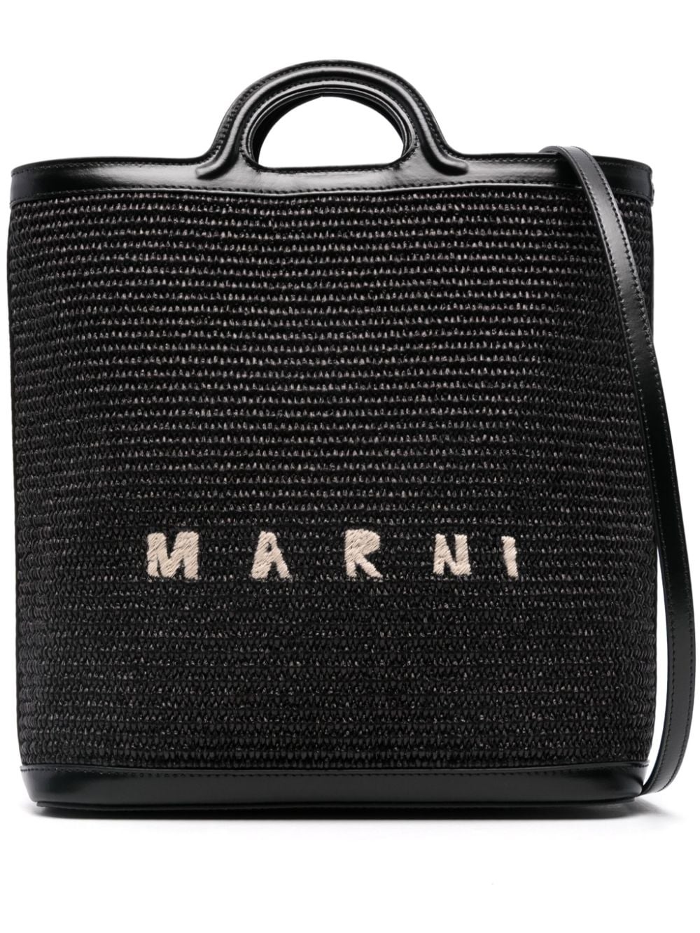 Tropicalia tote bag Highlights - Black - Leather trim - Woven raffia design - Two flat top handles - Adjustable detachable shoulder strap - Embroidered logo to the front - Main compartment - Full lining - Internal card slot - Internal logo patch - Magnetic fastening - This piece comes complete with a protective dust bag. Made in Italy Composition Outer: Calf Leather 100%, Zinc 94%, Polyamide 48%, Aluminium 4%, Ramie 2% Body: Cotton 52% Lining: Cotton 95%, Acrylic 5% SIZE & FIT Model measurements Height 5 ft 10 in(1.78 m) Bust/Chest 33.07 in(84 cm) Hips 36.61 in(93 cm) Waist 24.8 in(63 cm) Measurement DEPTH 3.14 in(8 cm) HANDLE 1.57 in(4 cm) HEIGHT 11.81 in(30 cm) STRAP 44.09 in(112 cm) WIDTH 11.02 in(28 cm)