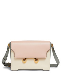 Trunkaroo shoulder bag Highlights - Powder pink - Foldover top with magnetic fastening - Adjustable shoulder strap - Main compartment - Colour-block design Made in Italy Composition Outer: Calf Leather 100%, Brass 100%, Steel 100% Lining: Sheepskin 100% SIZE & FIT Measurement DEPTH 3.54 in(9 cm) HEIGHT 6.69 in(17 cm) WIDTH 9.05 in(23 cm)