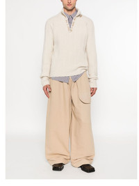 Embroidered Wool and Cashmere-Blend Half-Zip Sweater Beige