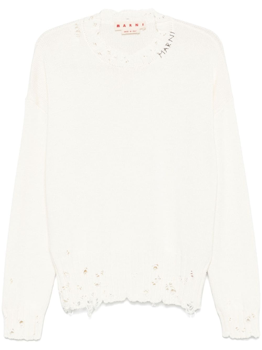 twisted crew-neck sweater Highlights - White - Cotton - Knitted construction - Crew neck - Distressed effect - Logo-embroidered collar - Long sleeves - Ribbed cuffs and hem Made in Italy Composition Cotton 100% SIZE & FIT Model measurements Height 6 ft 2 in(1.87 m) Bust/Chest 35.03 in(89 cm) Hips 34.64 in(88 cm) Waist 25.98 in(66 cm) FittingInformation Designed for a relaxed fit, this piece allows for comfort and movement when worn The ribbed hem offers a close, comfortable fit Made with a midweight knit, this piece offers some stretch