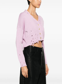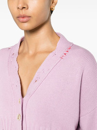 V-neck cotton cardigan Woven from soft cotton to a midweight knit, this lilac-hued cardigan speaks to Marni's exploration of texture and silhouette. Cut to a cropped length, it is emblazoned with stitching and ripped details for a worn-in flair. Highlights - Light orchid purple - Cotton - Knitted construction - Distressed finish - V-neck - Front button fastening - Drop shoulder - Long sleeves - Ribbed cuffs and hem - Cropped Made in Italy Composition Cotton 100% Washing instructions Dry Clean Only