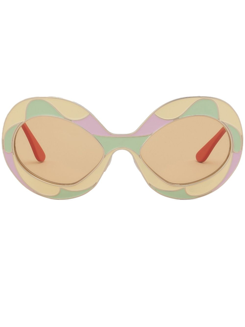 Vaso Land of Revelations oversize-frame sunglasses Highlights - Pastel yellow/multicolour - Metal - Oversize frame - Yellow tinted lenses - Abstract pattern print - Enamel detail - Logo print at the arm - Straight arms - Curved tips - These glasses come with a protective case. Made in Italy Composition Metal 70%, Resin 20%, Acetate 10%