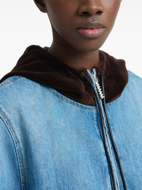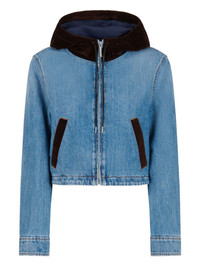 velvet-trimmed denim jacket Highlights - Blue - Denim - Velvet hood - Welt pockets - Zip fastening Made in Italy Composition Outer: Cotton 100%, Polyester 100%, Calf Leather 100% Lining: Polyester 100%, Cotton 69%, Polyamide 31% Washing instructions Read Manufacturer Guidelines