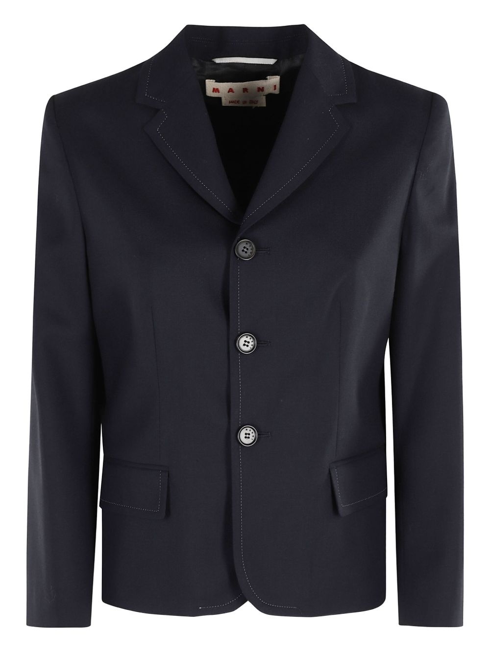 virgin-wool notched-lapel blazer Highlights - Midnight blue - Notched lapels - Front button fastening - Long sleeves - Straight hem - Front flap pockets Made in Italy Composition Virgin Wool 100% SIZE & FIT FittingInformation Designed for a slim fit that sits just away from the body offering a close yet comfortable fit Made from a midweight non-stretch fabric Washing instructions Read Manufacturer Guidelines