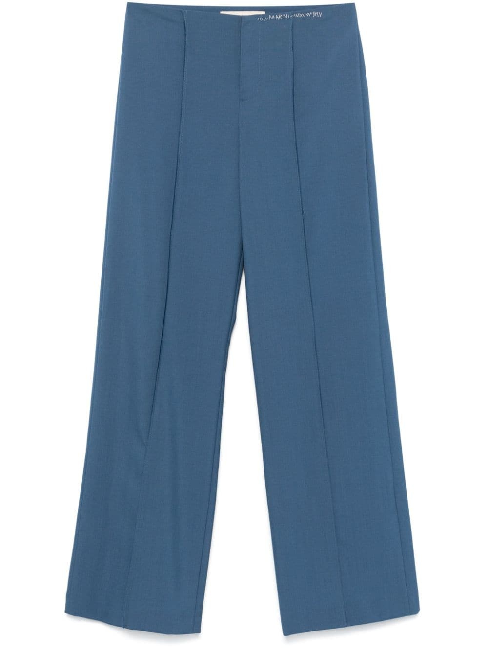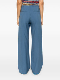 virgin wool trousers Highlights - Sapphire blue - Virgin wool - Tailored design - Concealed front button, hook and zip fastening - Seam detailing - Two rear welt pockets - Straight hem - Wide leg Made in Italy Composition Lining: Viscose 100% Outer: Virgin Wool 100% SIZE & FIT Model measurements Height 5 ft 11 in(1.8 m) Bust/Chest 33.07 in(84 cm) Hips 37.4 in(95 cm) Waist 25.19 in(64 cm) FittingInformation Designed with a wide-leg cut, these trousers allow for a close fit at the waist and offer a loose and roomy fit over the leg Made from a midweight non-stretch fabric