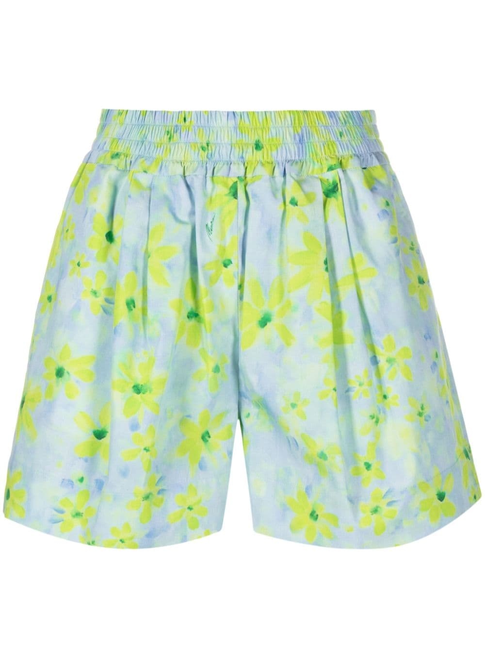 watercolour floral-pattern cotton shorts Highlights - Blue/green - Cotton - Poplin texture - All-over floral print - Watercolour effect - Embroidered logo to the rear - Elasticated waistband - Pleat detailing - High-waisted - Two side slash pockets - Two rear jetted pockets - Flared - Short side slits - Unlined Made in Italy Composition Cotton 100% SIZE & FIT Measurement FRONT RISE 12.4 in(31.5 cm) HIPS 41.73 in(106 cm) WAIST 27.95 in(71 cm) Washing instructions Hand Wash