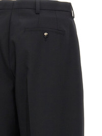 wool trousers Highlights - Black - Concealed front fastening - Belt loops - Two side slit pockets - Two rear welt pockets Made in Italy Composition Polyester 53%, Virgin Wool 43%, Elastane 4%