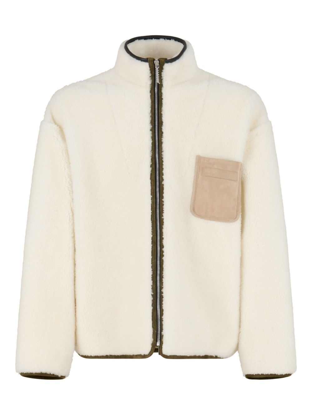 zip-up fleece bomber jacket Highlights - White - High collar - Zip front fastening - Patch chest pocket - Long sleeves Made in Italy Composition Lamb Fur 100% Washing instructions Read Manufacturer Guidelines