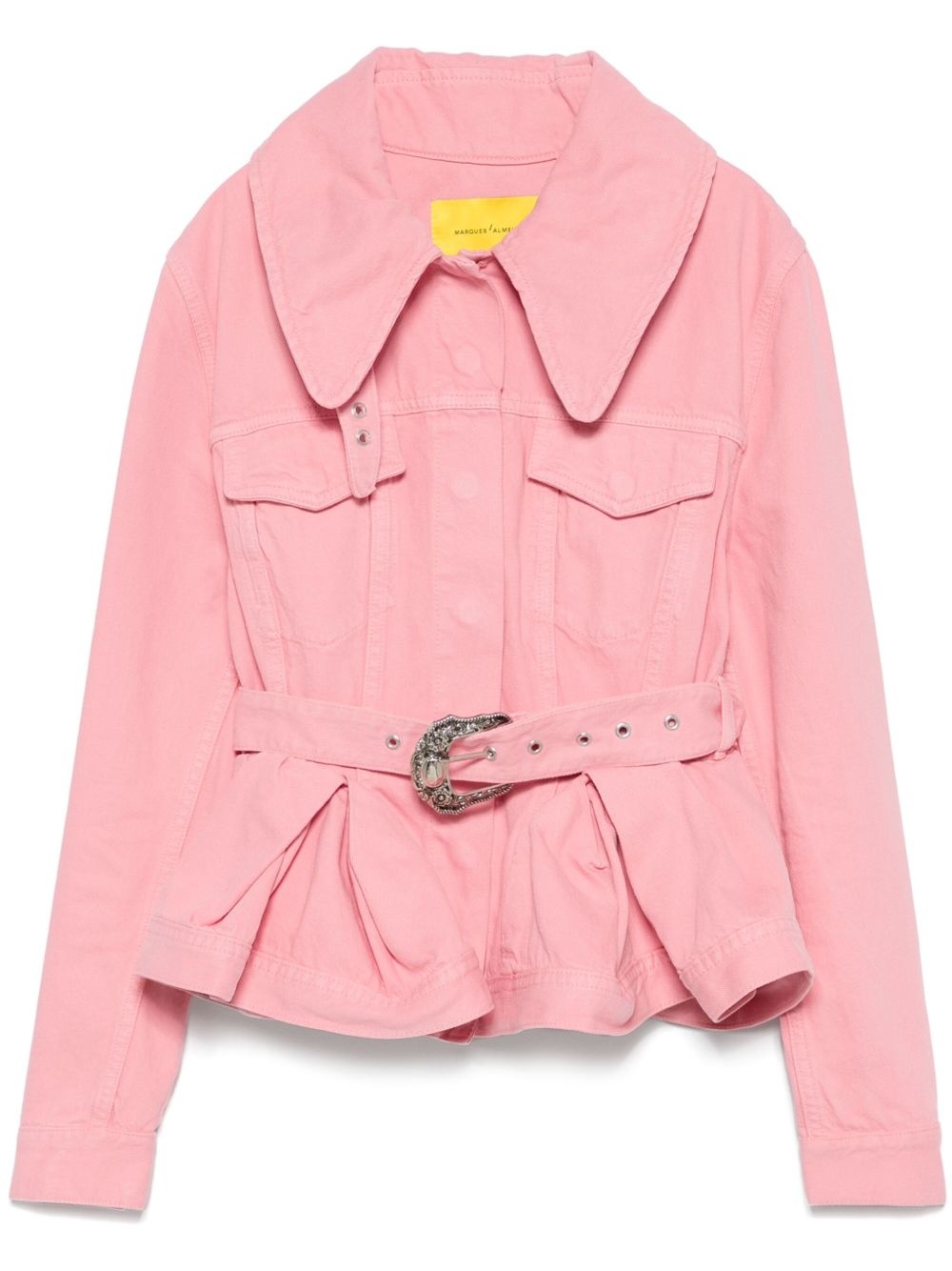 belted jacket Highlights - Flamingo pink - Concealed press-stud fastening - Press-stud fastening cuffs - Two stud-fastening chest pockets - Detachable and adjustable waist belt Imported Composition Organic Cotton 50%, Cotton 50% SIZE & FIT Model measurements Height 5 ft 10 in(1.78 m) Bust/Chest 31.49 in(80 cm) Hips 37 in(94 cm) Waist 23.62 in(60 cm) FittingInformation Designed for a slim fit that sits just away from the body offering a close yet comfortable fit The belt offers adjustability for fitted preferences Sturdy and hard-wearing, this denim piece offers no stretch