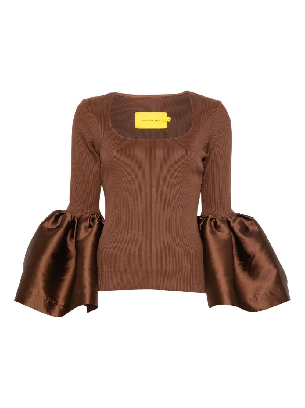 Mikado blouse Highlights - Brown Imported Composition Cotton 97%, Polyester 85%, Silk 15%, Elastane 3% SIZE & FIT Model measurements Height 5 ft 10 in(1.78 m) Bust/Chest 33.85 in(86 cm) Hips 36.61 in(93 cm) Waist 26.77 in(68 cm) Washing instructions Dry Clean Only