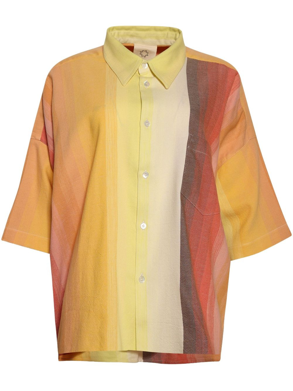 The Short Sleeve Oversized Shirt Highlights - Sunflower yellow - Front button fastening - Oversized pointed collar - Chest patch pocket - Vertical stripe pattern Imported Composition Cotton 100% Washing instructions Read Manufacturer Guidelines
