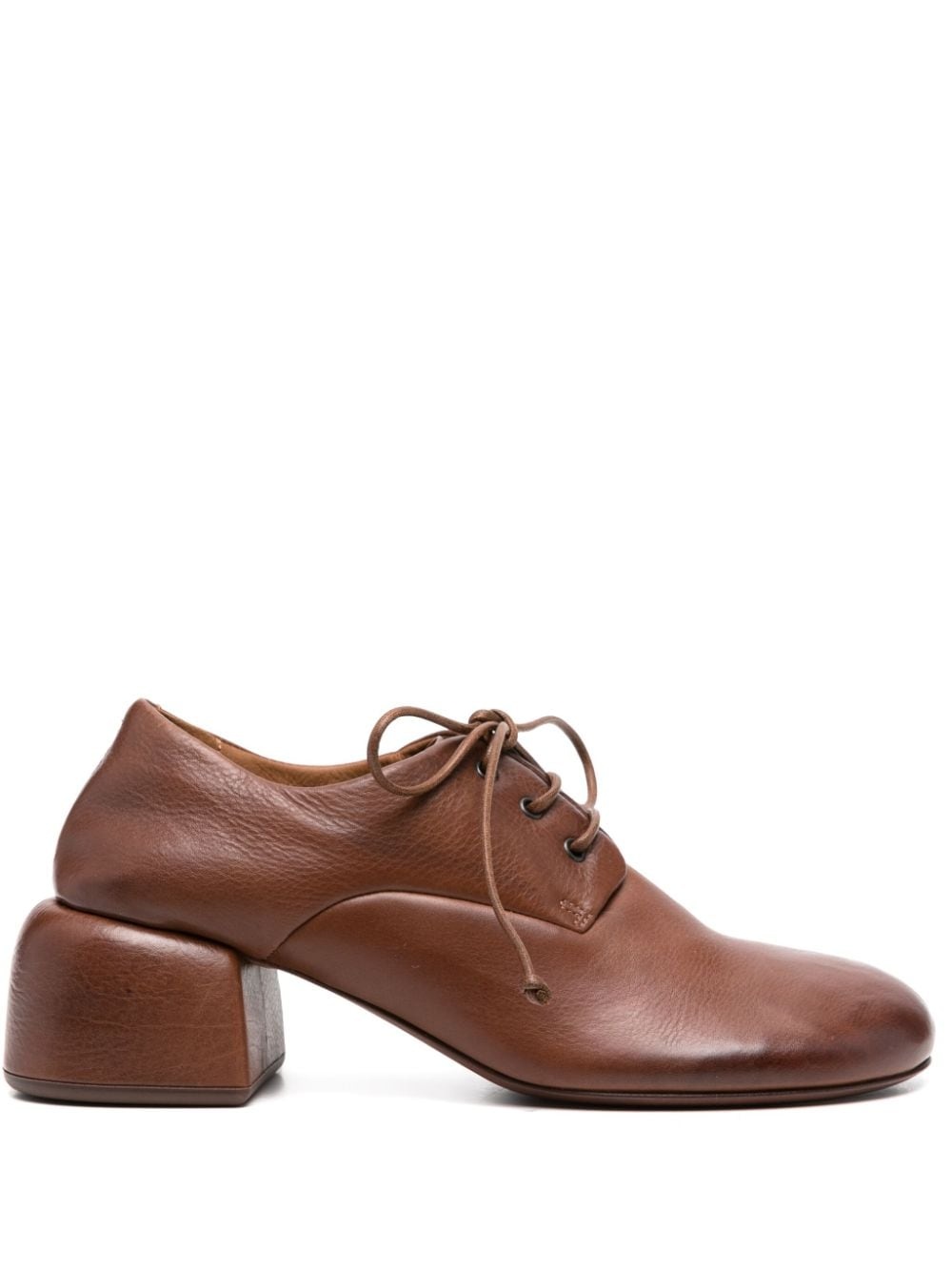 50mm Basata Derby shoes cognac brown calf leather grained texture front lace-up fastening branded leather insole 50mm mid block heel round toe Made in Italy Composition Outer: Calf Leather 100% Lining: Calf Leather 100% Sole: Calf Leather 100%, Rubber 100% SIZE & FIT Measurement HEEL 1.96 in(5 cm)