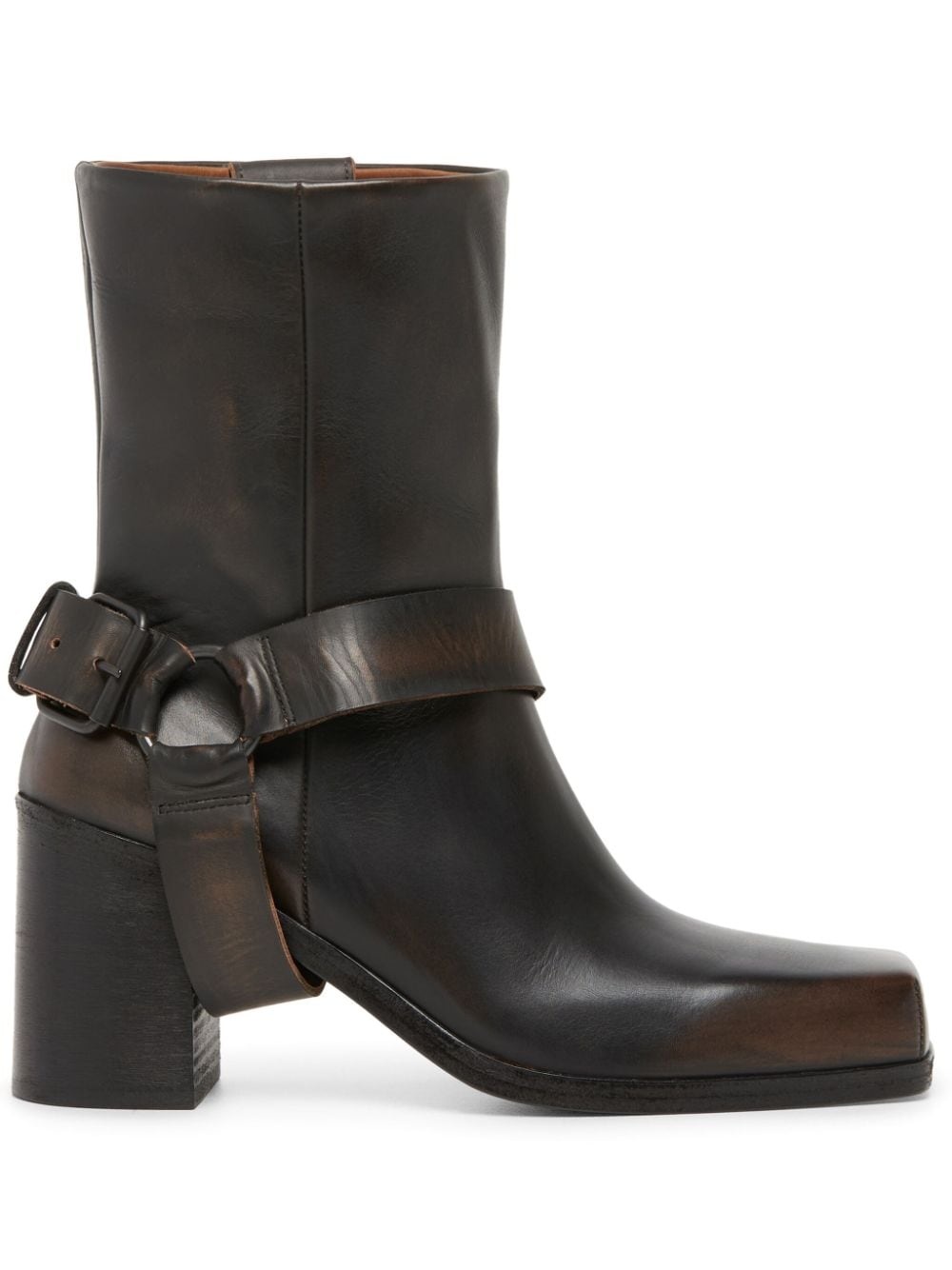 Anta biker boots black/brown calf leather smooth grain detachable decorative buckle detail tonal stitching block heel square toe Made in Italy Composition Lining: Calf Leather 100% Outer: Calf Leather 100% Sole: Calf Leather 100%