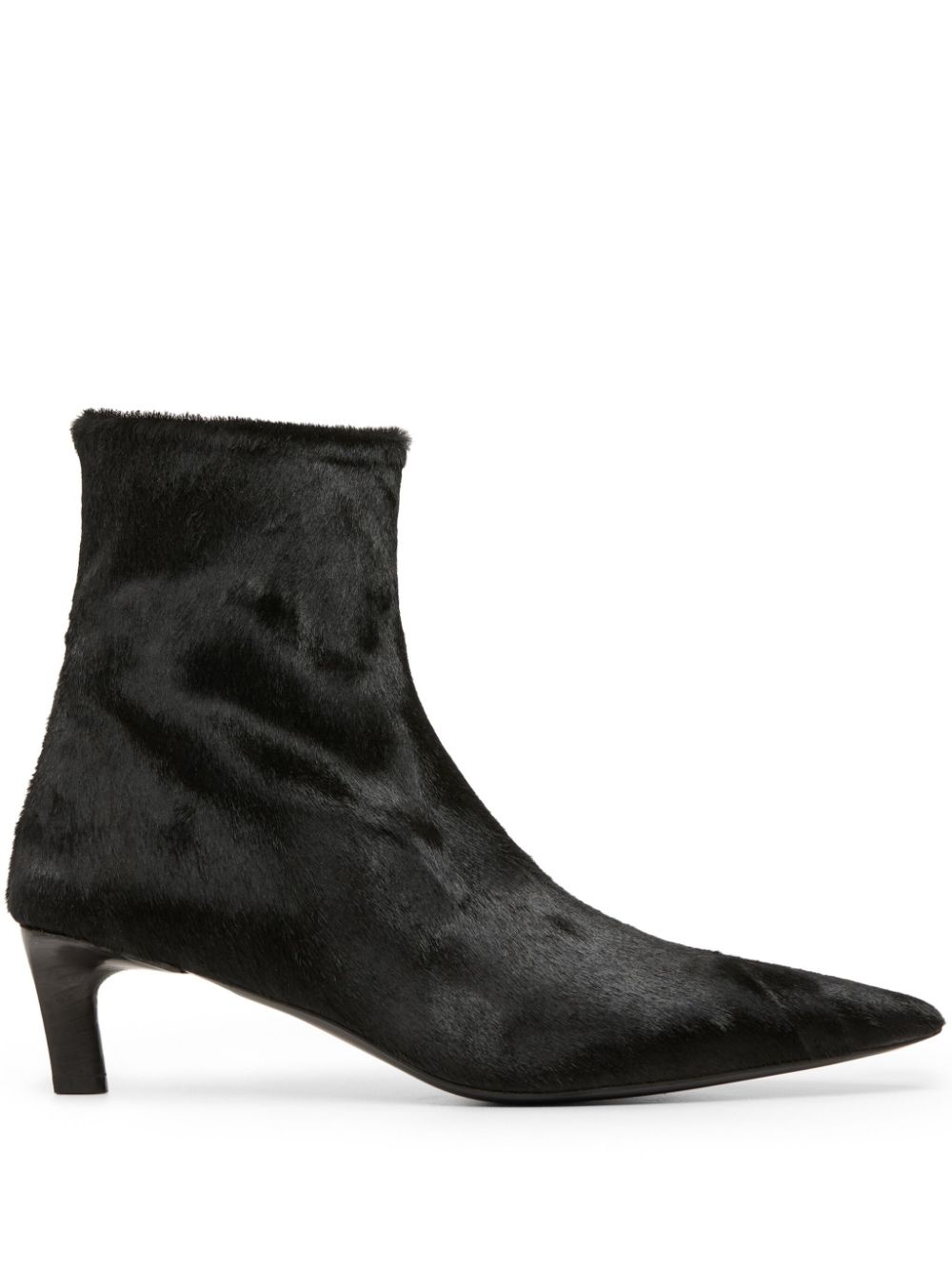 Aculeo pointed-toe boots black leather calf hair tonal stitching pointed toe side zip fastening ankle-length low stacked heel Made in Italy Composition Outer: Calf Hair 100% Lining: Leather 100% Sole: Leather 100%