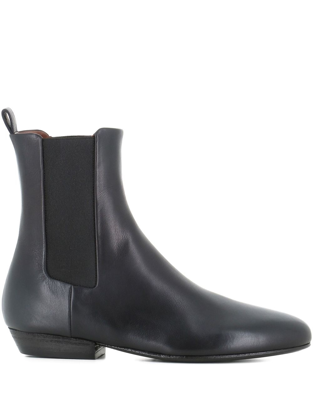 elastic-panel leather boots Highlights - Black - Leather - Elastic side panel - Almond toe - Flat heel - Pull-on style Made in Italy Composition Lining: Calf Leather 100% Outer: Calf Leather 100% Sole: Calf Leather 100%