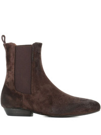 elastic-panel suede boots Highlights - Brown - Suede - Elastic side panels - Almond toe - Flat sole - Rear pull-tab Made in Italy Composition Outer: Suede 100% Sole: Calf Leather 100% Lining: Calf Leather 100%