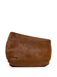 Fantasmino leather cross body bag brown calf leather tonal stitching embroidered logo asymmetric design top zip fastening side flat handle adjustable detachable shoulder strap main compartment internal logo patch Made in Italy Composition Outer: Calf Hair 100%