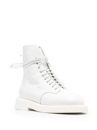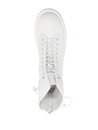 Gommello leather combat boots white calf leather rear zip fastening front tie fastening ankle-length round toe flat rubber sole branded insole Made in Italy Composition Leather 100% SIZE & FIT Measurement HEEL 1.37 in(3.5 cm) Sole height 0.78 in(2 cm) HEIGHT 5.9 in(15 cm)