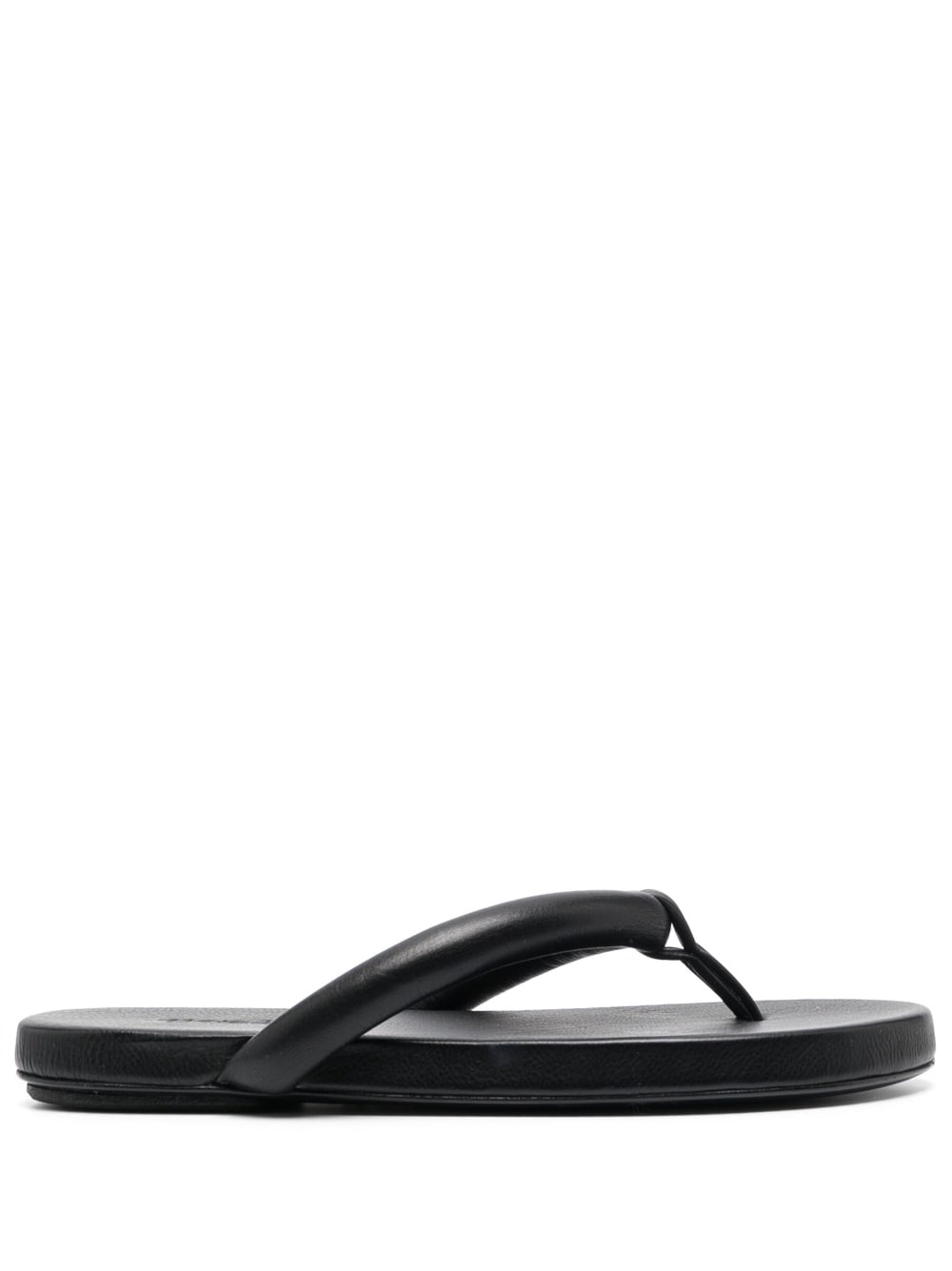 leather flip flops Highlights - Jet black - Calf leather - Smooth grain/grained texture - Thong strap - Branded insole - Open toe - Round toe - Slip-on style - Flat leather sole Made in Italy Composition Outer: Calf Leather 100% Lining: Calf Leather 100% Sole: Calf Leather 100%, Rubber 100% SIZE & FIT Measurement HEEL 0.78 in(2 cm) Sole height 0.78 in(2 cm)