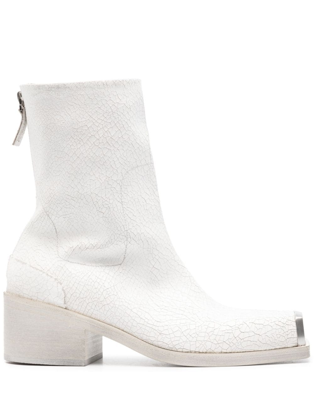 metal-toecap crinkled boots Highlights - White - Calf leather - Crinkled finish - Silver-tone metal toecap - Square toe - Rear zip fastening - Leather lining - Low block heel Made in Italy Composition Lining: Calf Leather 100% Outer: Calf Leather 100% Sole: Calf Leather 100%, Rubber 100% SIZE & FIT Measurement CIRCUMFERENCE 10.62 in(27 cm) HEEL 2.16 in(5.5 cm) HEIGHT 7.48 in(19 cm) Sole height 0.39 in(1 cm)