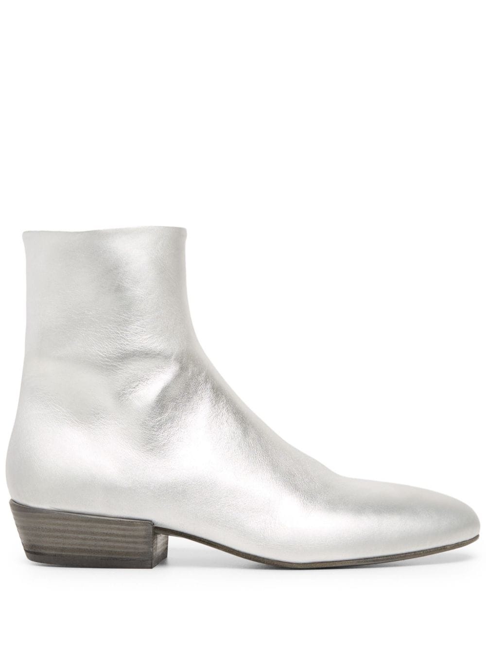 Granblocco metaliic-leather ankle boots silver-tone leather almond toe side zip fastening ankle-length low sculpted heel leather sole Made in Italy Composition Sole: Leather 100% Lining: Leather 100% Outer: Leather 100%