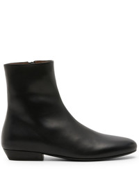 Miniblocco boots black calf leather smooth grain side zip fastening block heel round toe ankle-length branded leather insole leather sole Made in Italy Composition Sole: Calf Leather 100%, Rubber 100% Lining: Calf Leather 100% Outer: Calf Leather 100%