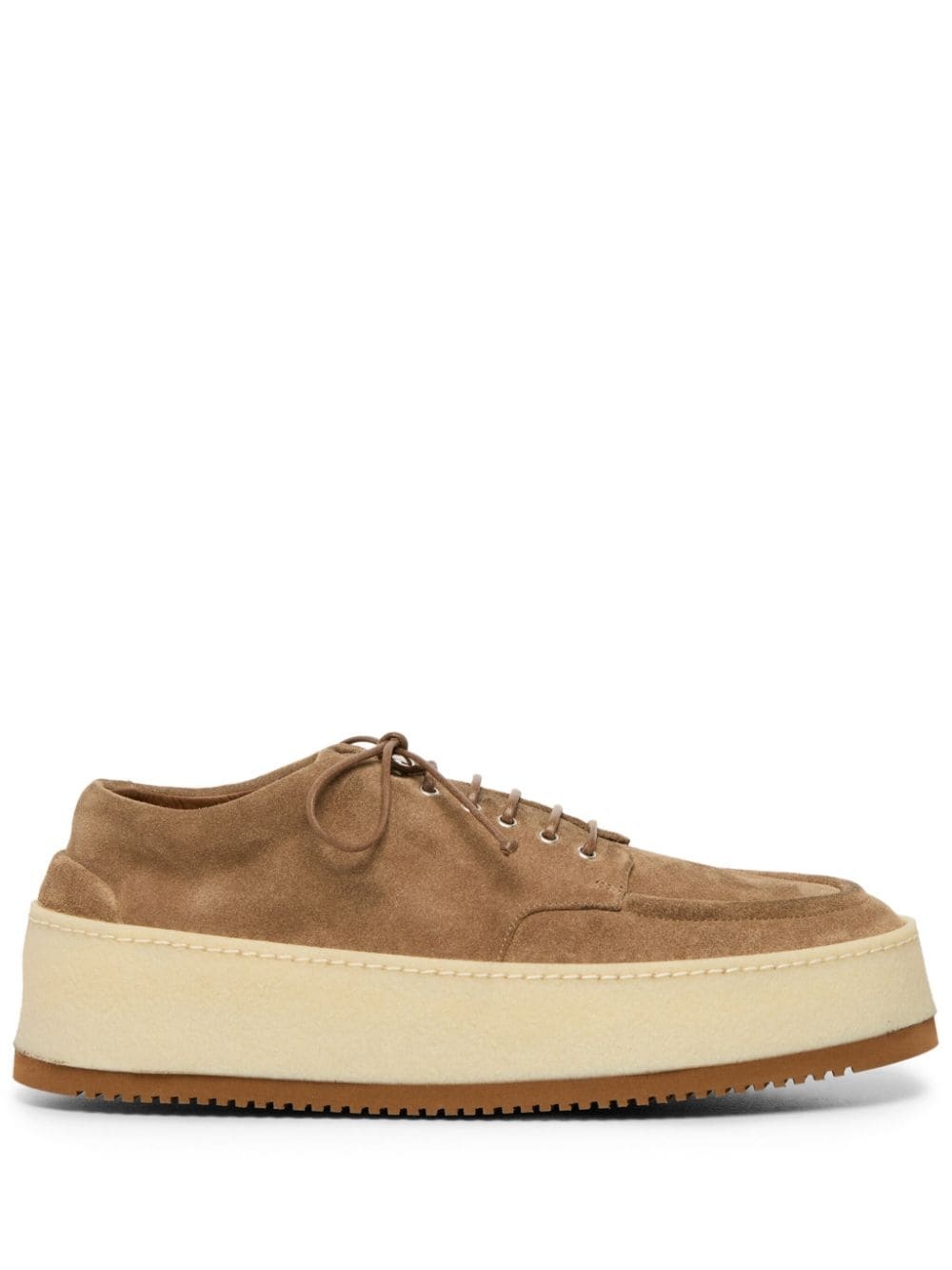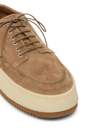 Parapana platform Derby shoes camel brown suede apron toe round toe front lace-up fastening platform sole ridged rubber sole Made in Italy Composition Sole: Rubber 100% Outer: Suede 100% Lining: Leather 100% SIZE & FIT Measurement HEEL 1.96 in(5 cm) Sole height 1.57 in(4 cm)